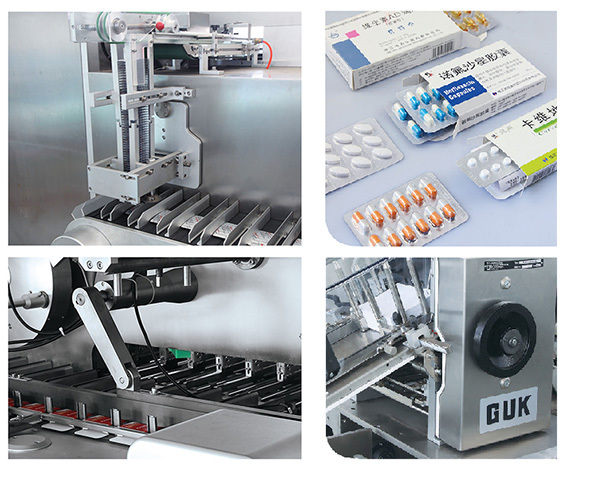 DXH- 220型自动装盒机属连续式高运行,是机电一体化的高科技产品。适用于药品铝塑板块、药瓶、化妆品、日用品、五金电器、扑克等以及相类似物品的装盒包装,能自动完成说明书的折叠,纸盒打开,物品装盒,打印批号,封盒等工作。
